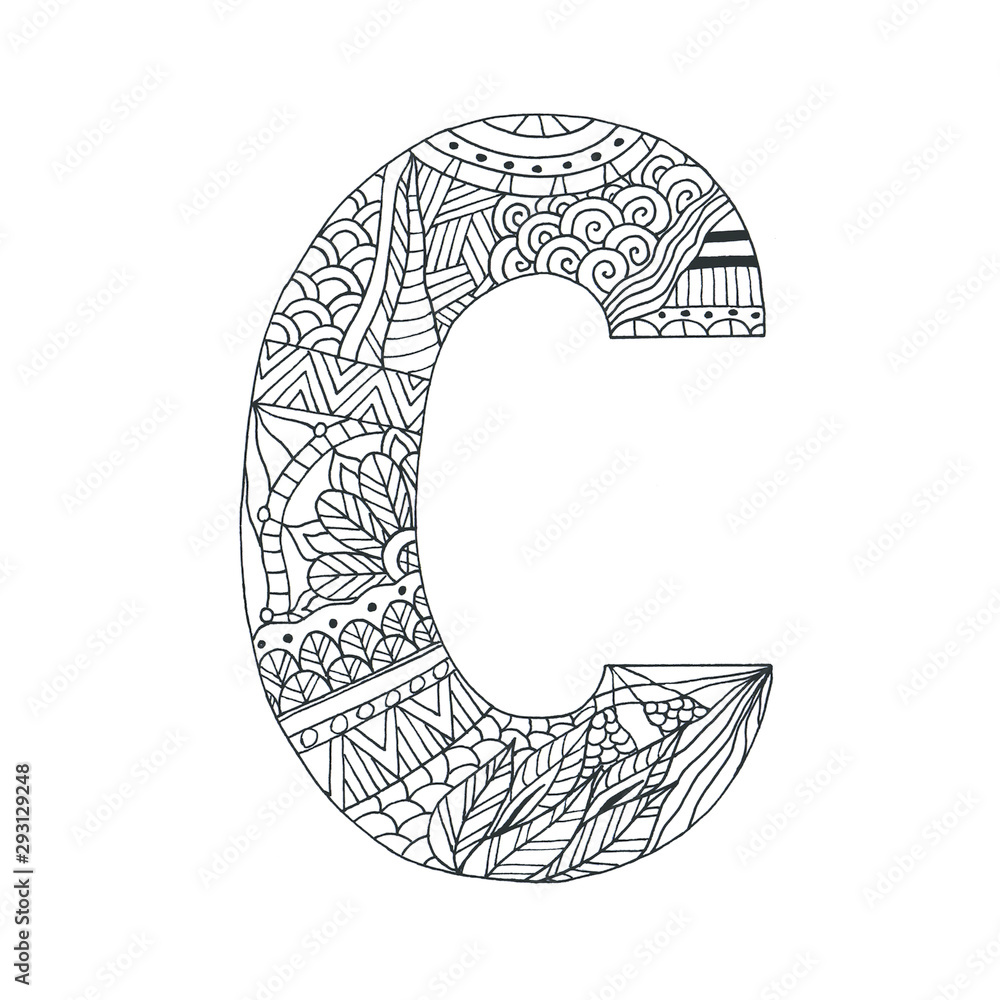 Coloring Page Letter C For Children And Adults Antistress Book One Of The Series Of Coloring Alphabet Outline Drawing With Patterns And Details Raster Format Stock Illustration Adobe Stock