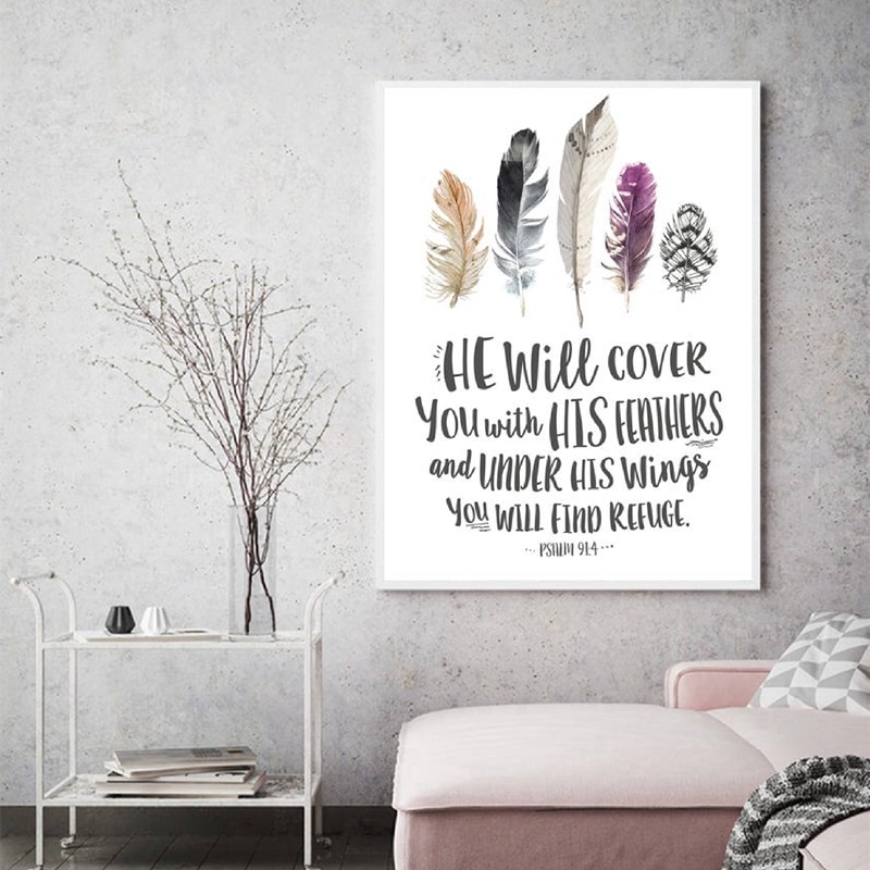 Bible Verse Psalm 91 4 Quotes Poster Art Print Birds Feathers Scripture Christian Wall Art Canvas Painting Pictures Home Decor Shopee Singapore